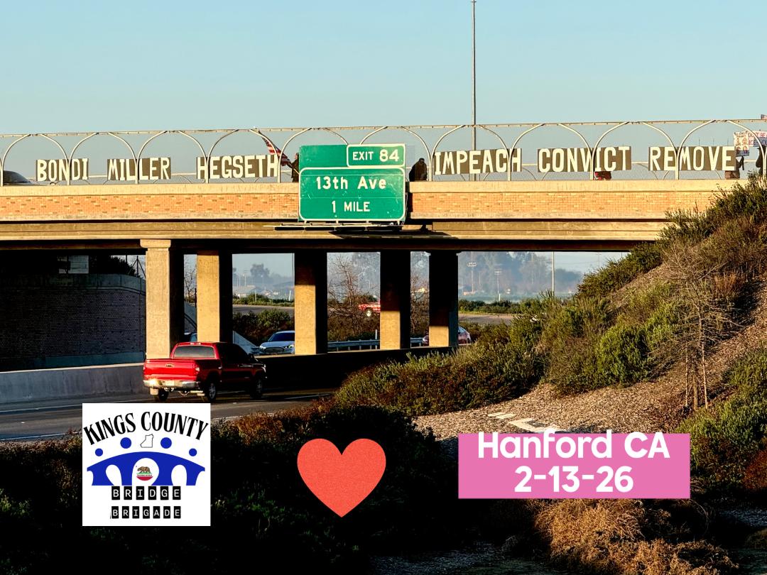 I hope that you all are doing well. Our Bridge Brigade Crew is still out there every Friday morning except in the pouring rain. We learned that it is hard to see us in the dense fog. We had extra brigades around the Prop 50 Election. Kings County had 50% of the voters turn out and this is good. It still did not pass in Kings County but the gap is closing. You can see election results here: https://www.countyofkingsca.gov/home/showpublisheddocument/39147/638993204390530000